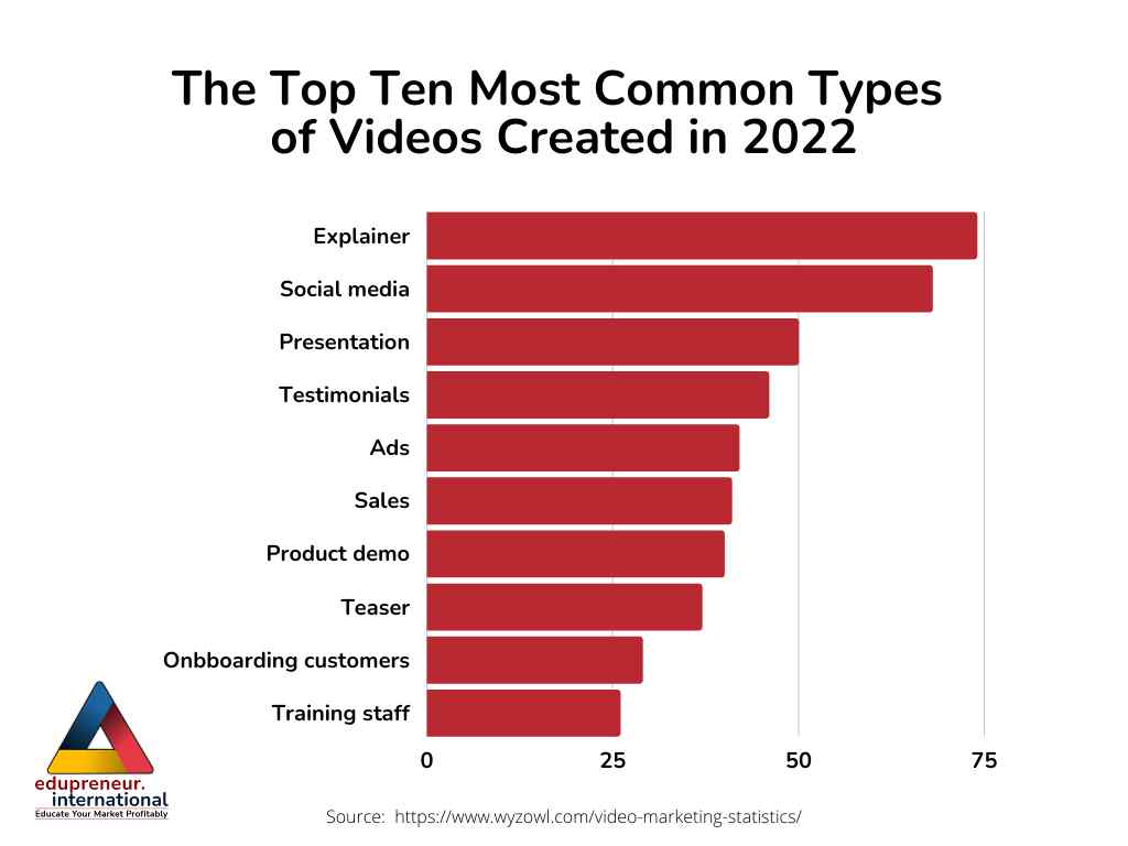 The most common types of videos created are explainer videos, but videos are used in a multitude of ways and for a variety of purposes.