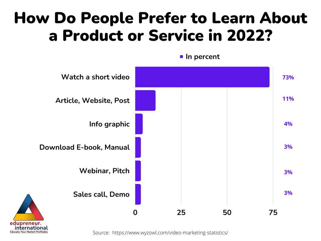 When asked how they'd prefer to learn about a product or service, 73% said they'd rather watch a short video.