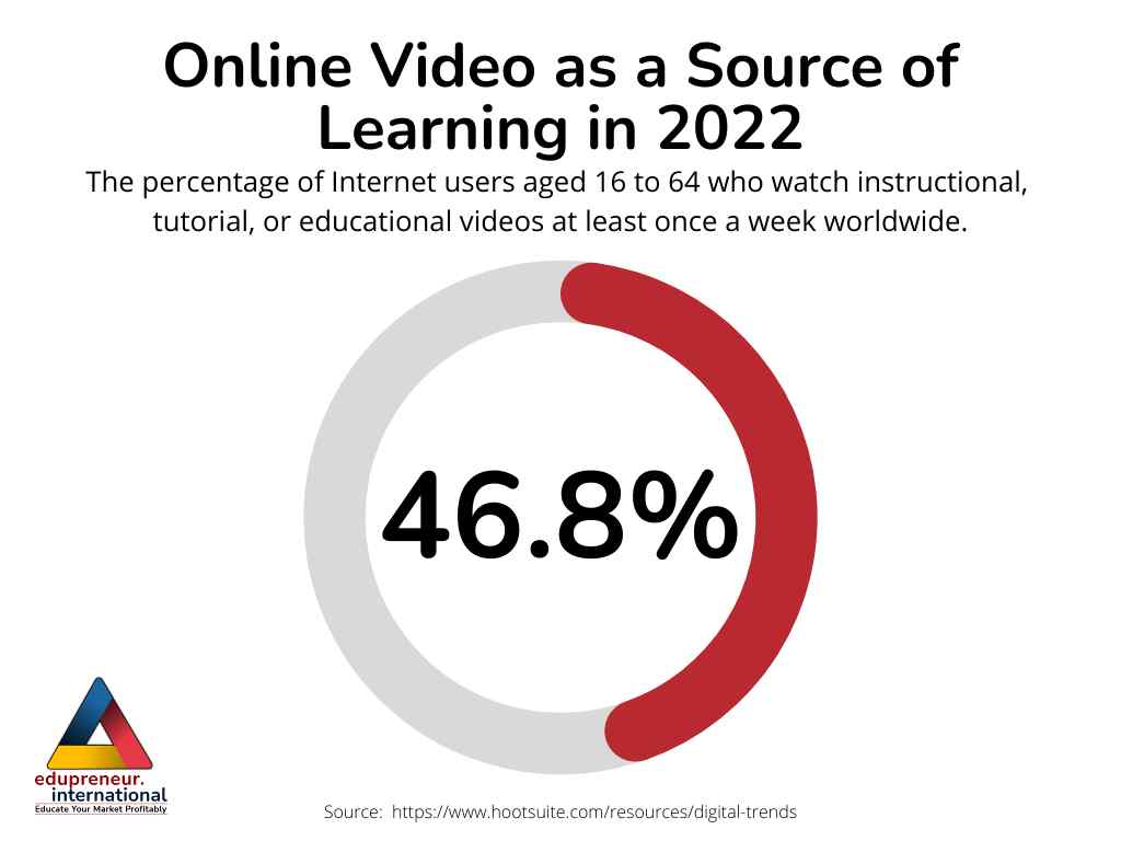 46.8% of Internet users aged 16-64 watch instructional, tutorial, or educational videos at least once a week worldwide and use them as a learning resource.